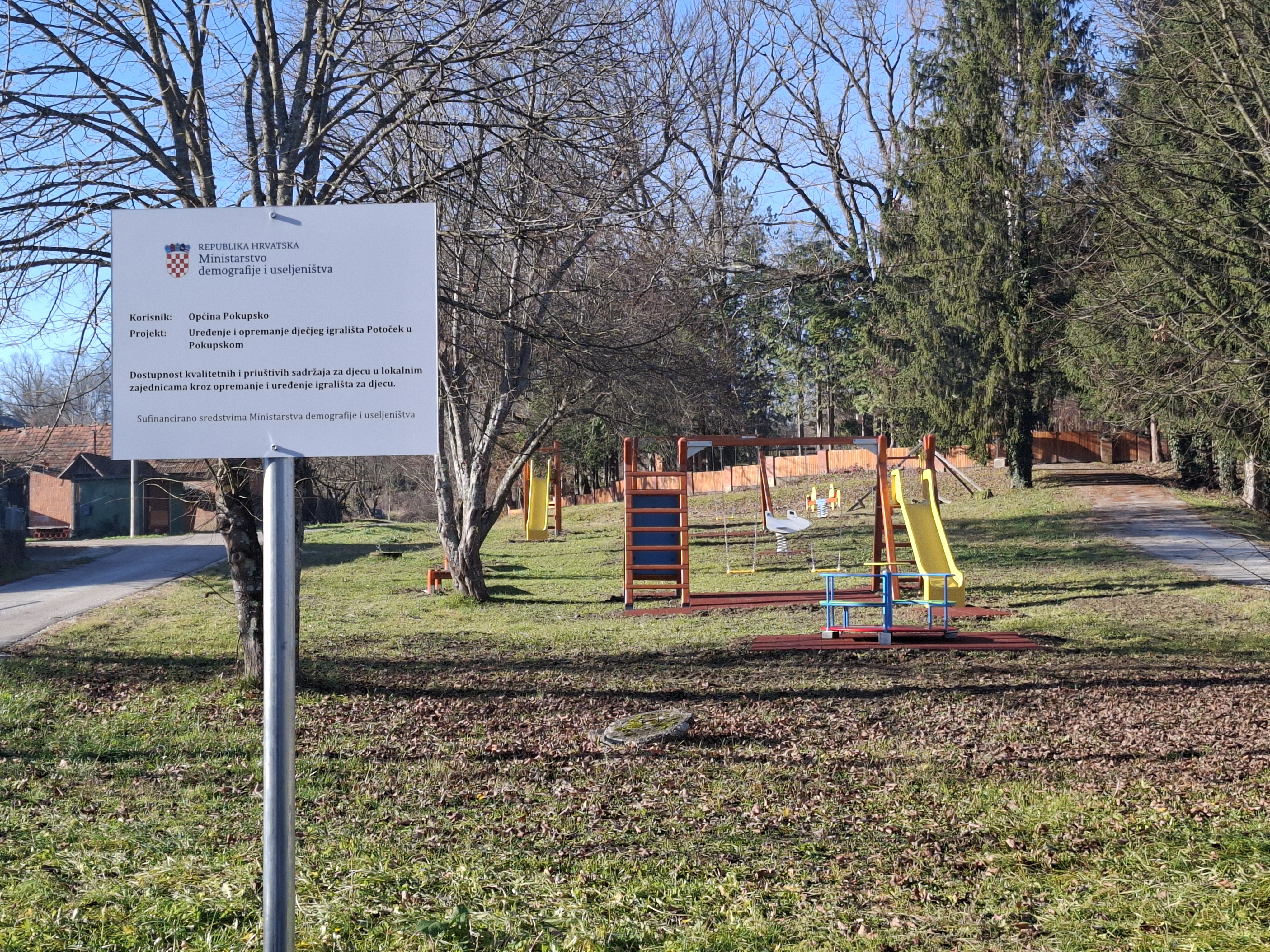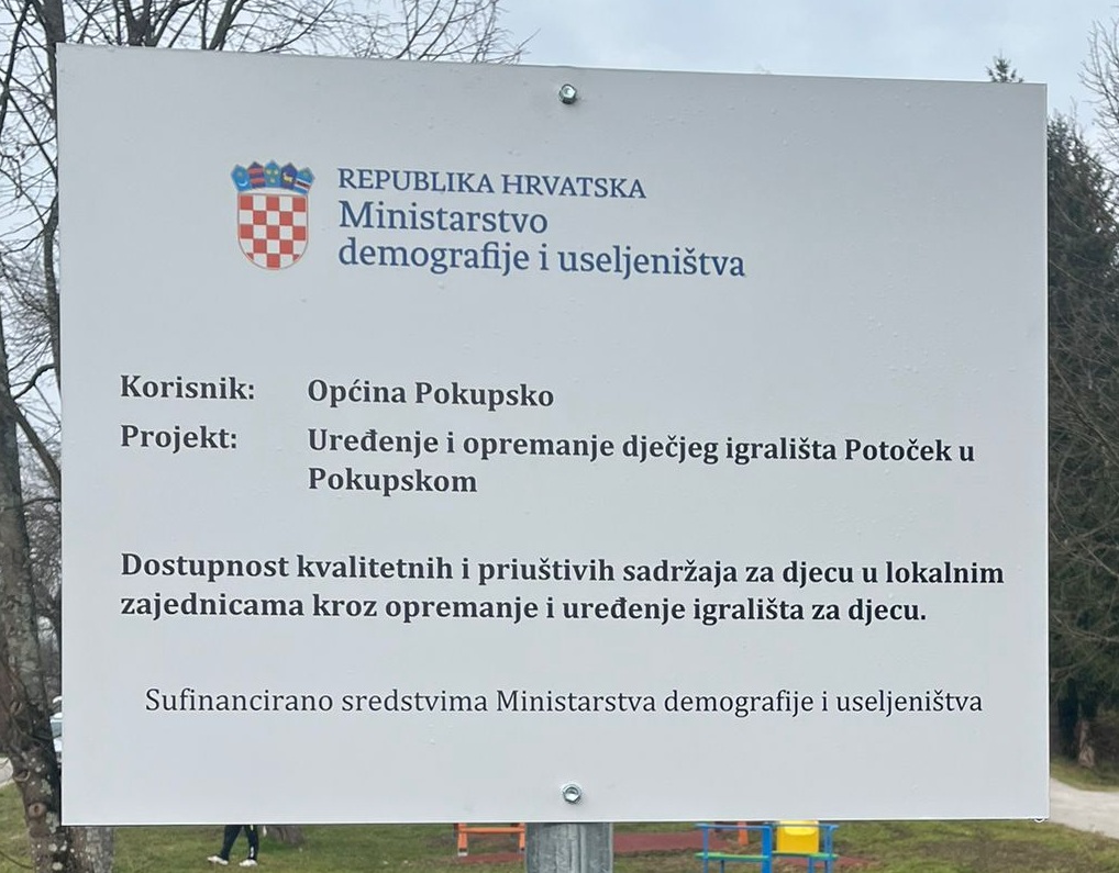 Općina Pokupsko provela je projekt ” Uređenje i opremanje dječjeg igrališta Potoček u Pokupskom “, radi zamjene dotrajalih sprava za nove, te ugradnje sigurnosne antistres podloge. Cilj projekta je bilo osigurati sigurno i moderno igralište za djecu, poboljšati uvjete za igru i razvoj te povećati sigurnost korisnika. Korištenjem ekološki prihvatljivih materijala projekt doprinosi održivosti i dugoročnoj funkcionalnosti prostora za djecu, čime se podiže kvaliteta života u lokalnoj zajednici.